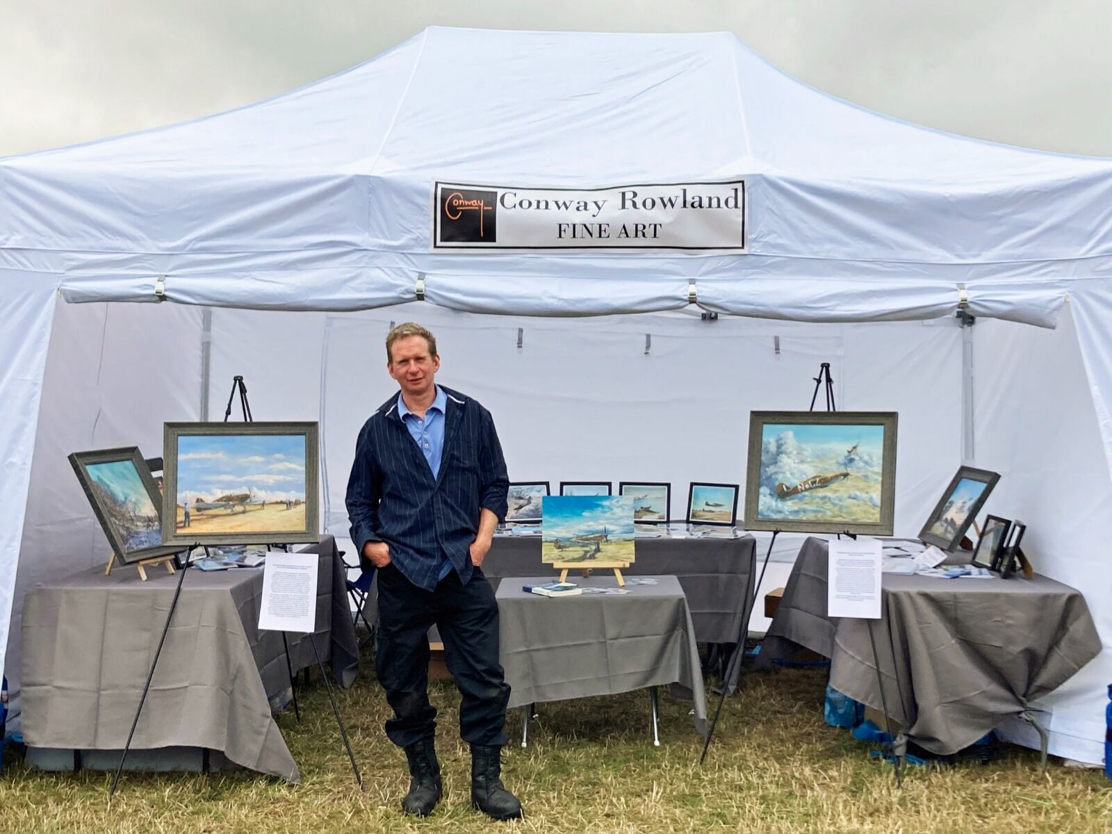 In the end, the invitation to participate in the Aerodrome’s Member’s Day proved irresistible for me, and sparked off a flurry of activity here, working out just how to get everything together for our first art ‘stand’, with our own marquee, at an airshow.